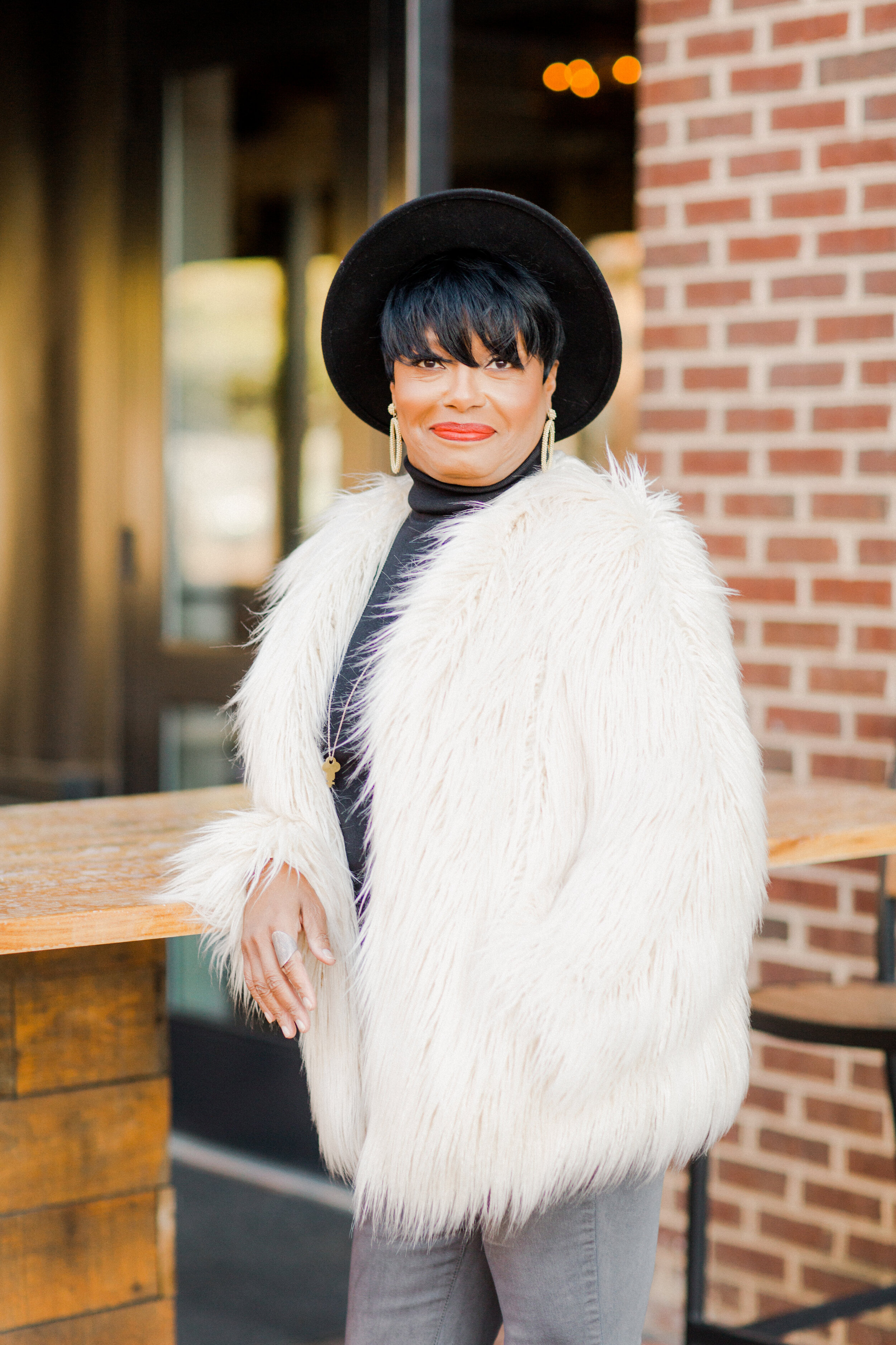 Fashion Deets….Fedora and Pants from Free People. Faux Fur Jacket… I’ve had this jacket for a couple of years y’all…it’s from Ann Taylor.